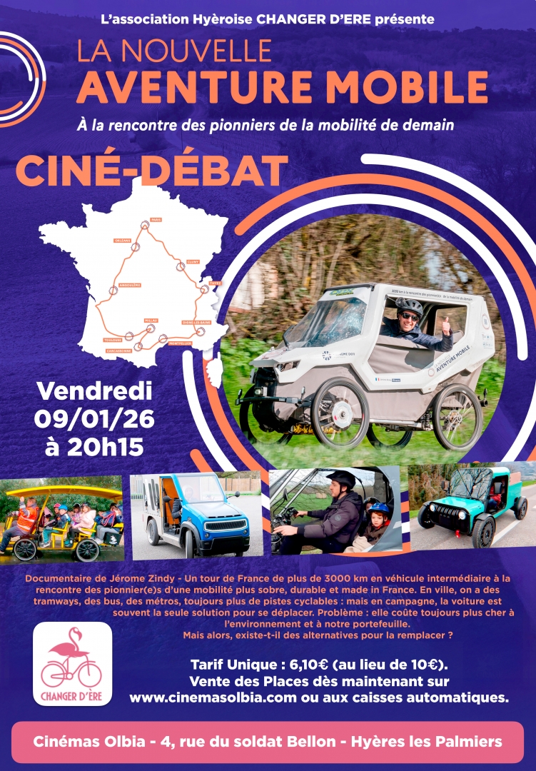 La nouvelle aventure de la mobilité : Le film. Un voyage de 3 000 km à travers la France en véhicule intermédiaire à la rencontre des pionniers d'une mobilité plus durable, écologique et made in France. Dans les villes, nous avons des tramways, des bus, des métros et des pistes cyclables de plus en plus nombreuses. Mais à la campagne, la voiture est souvent le seul moyen de se déplacer. Le problème ? Elle devient de plus en plus coûteuse, tant pour l'environnement que pour nos portefeuilles. Alors, existe-t-il des alternatives pour la remplacer ? Pour trouver des solutions, Jérôme Zindy, réalisateur et reporter cycliste, parcourt la France à bord d'un véhicule léger et innovant, à la rencontre des pionniers qui inventent et testent des véhicules respectueux des limites planétaires, tout en créant des emplois en France et en Europe. Entre le vélo et la voiture électrique, on appelle cela... des véhicules intermédiaires.
